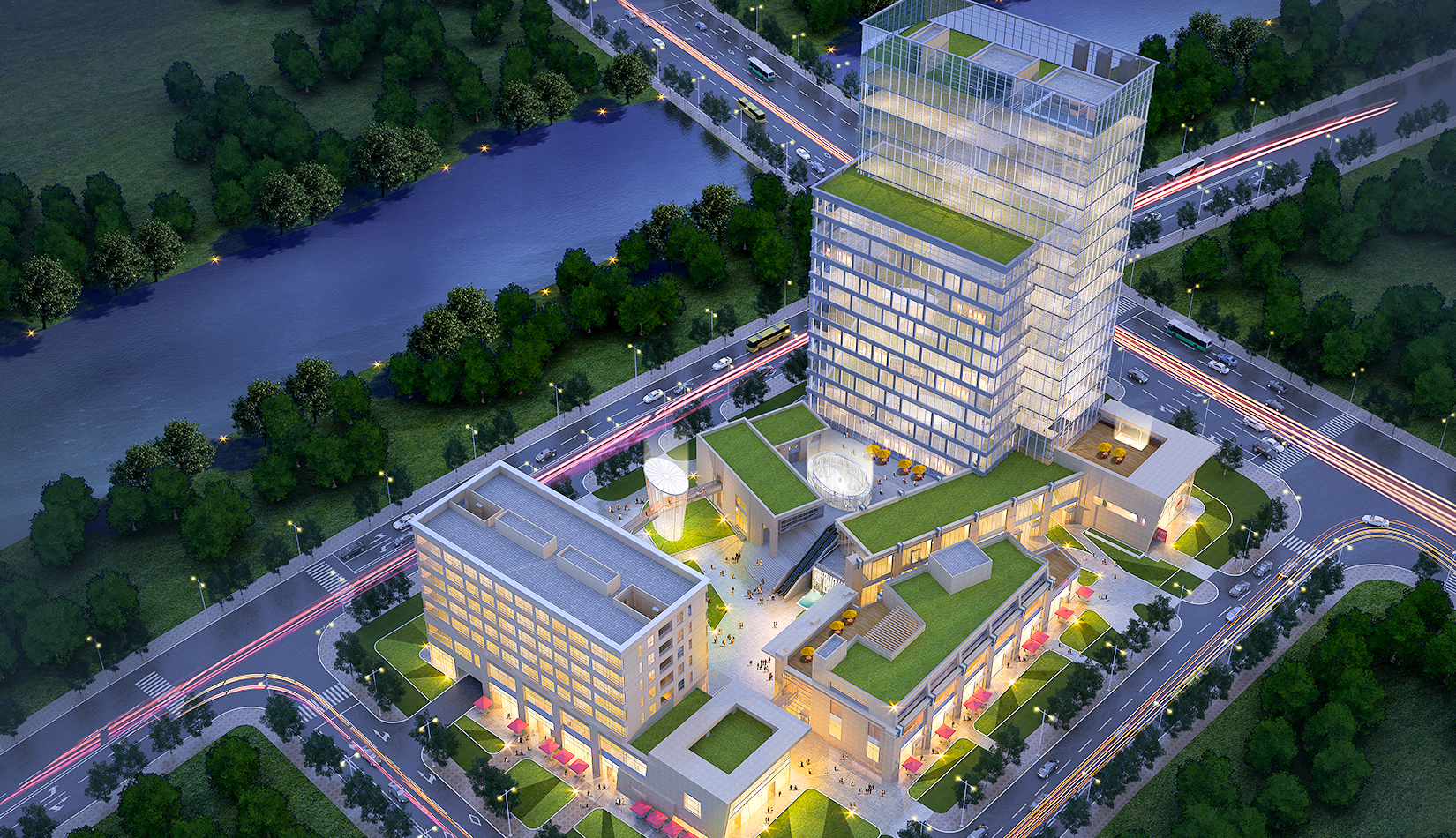 本項目包含商業(yè)、酒店、公寓、辦公、電影院等功能,作為一個商業(yè)綜合體滿足中德生態(tài)園周邊居民的生活、
