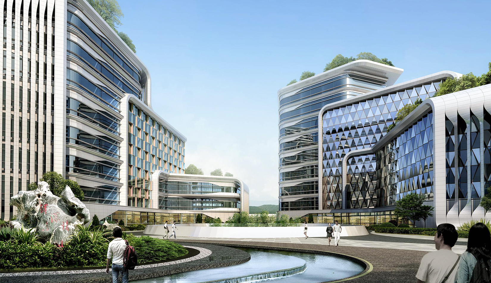 規(guī)劃設(shè)計以“曲水流觴”為理念,空間布局取“曲水流觴”場景精髓,以曲徑通幽的景觀系統(tǒng)作為主軸,以組團(tuán)布局的院士樓為節(jié)點(diǎn),完成整個園區(qū)的規(guī)劃設(shè)計。布局貫穿南北的云游步道,曲徑通幽,步移景異,人在步道上行走,猶如流動的羽觴杯,尋訪院士樓、穿行重重竹林、覓河濱綠地等景致,體會古代曲水流觴之儒風(fēng)雅俗。
