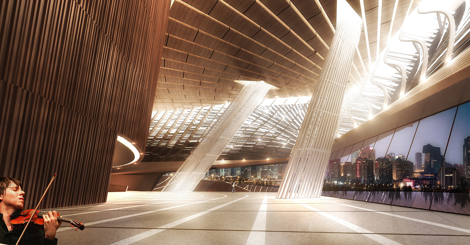 中國傳統(tǒng)文化“天人合一”的自然觀與社會觀,以“山、水”的自然美來再現(xiàn)“智者樂山、仁者樂水”的儒家美學(xué)觀。建筑設(shè)計(jì)中將中軸景觀河畔景觀設(shè)計(jì)與建筑設(shè)計(jì)相融合,以此與整個大學(xué)城的城市景觀相融合,達(dá)到建筑與景觀一體化設(shè)計(jì)的結(jié)果,提高了整個園區(qū)的品質(zhì)與園區(qū)文化。