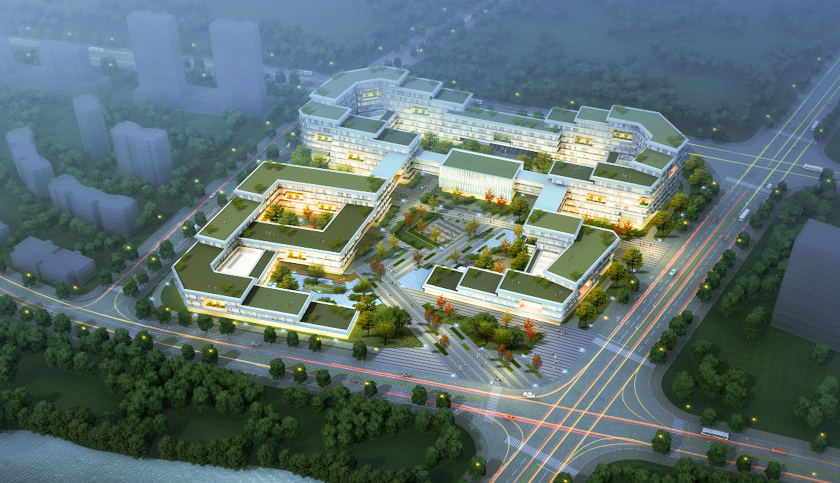 設(shè)計大、中、小三種空間尺度的景觀庭院,通過底層架空,使各空間既相互獨立,又互相滲透。增大建筑與景觀的接觸面,打造園林式辦公環(huán)境。