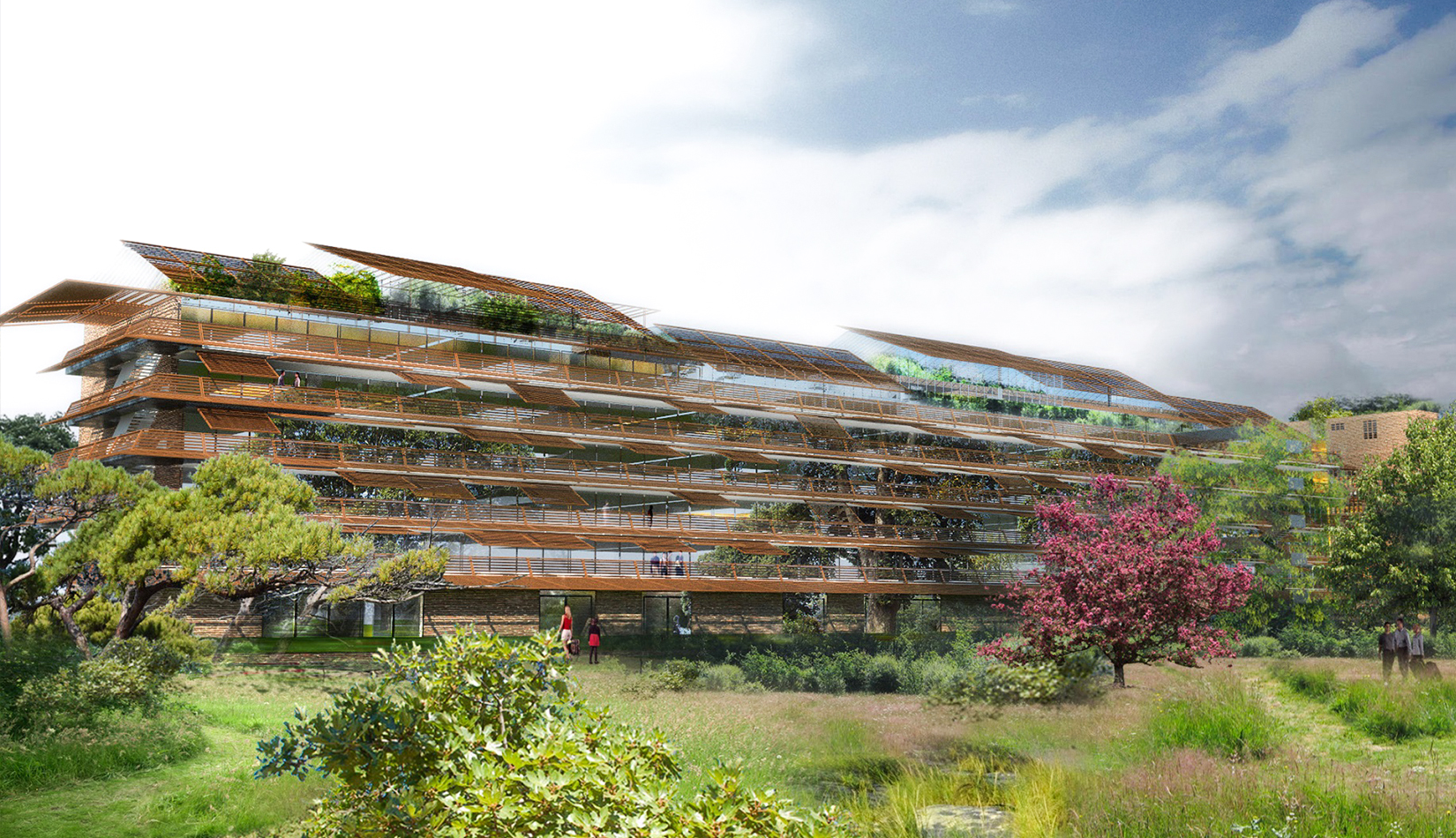 我們將建筑進(jìn)行分組、散落布置,以多層建筑為主,高低錯(cuò)落,建筑之間穿插各種不同主題的花園景觀,形成“花園中的藝術(shù)聚落”。