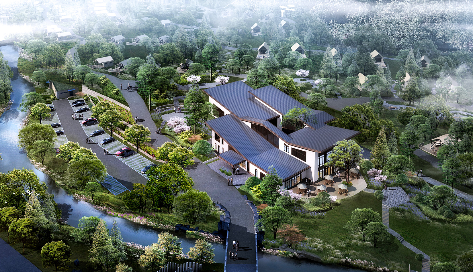景觀設(shè)計(jì)從野奢度假酒店的“野”和“奢”兩字入手,融入荒野生態(tài)的設(shè)計(jì)理念,又要與場(chǎng)地相融合、與原生態(tài)相映、與當(dāng)?shù)氐拿袼罪L(fēng)情相交匯,突出當(dāng)?shù)氐奈幕黝},強(qiáng)調(diào)高品質(zhì)的自然、野奢度假,從而打造出一個(gè)具備個(gè)性與特色,使游客能夠享受到自然野趣體驗(yàn)的景觀環(huán)境。