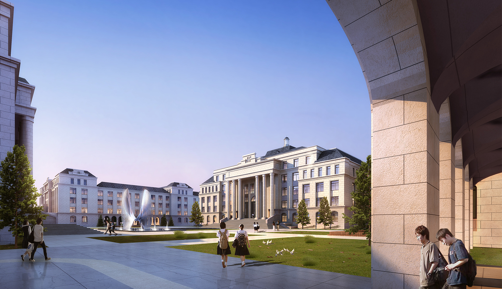 景觀設計引用了《禮記聘義》中對玉的六大特征:“禮”“知” “樂” “信”“義”“仁”作為景觀主題植入學校各個重要空間。