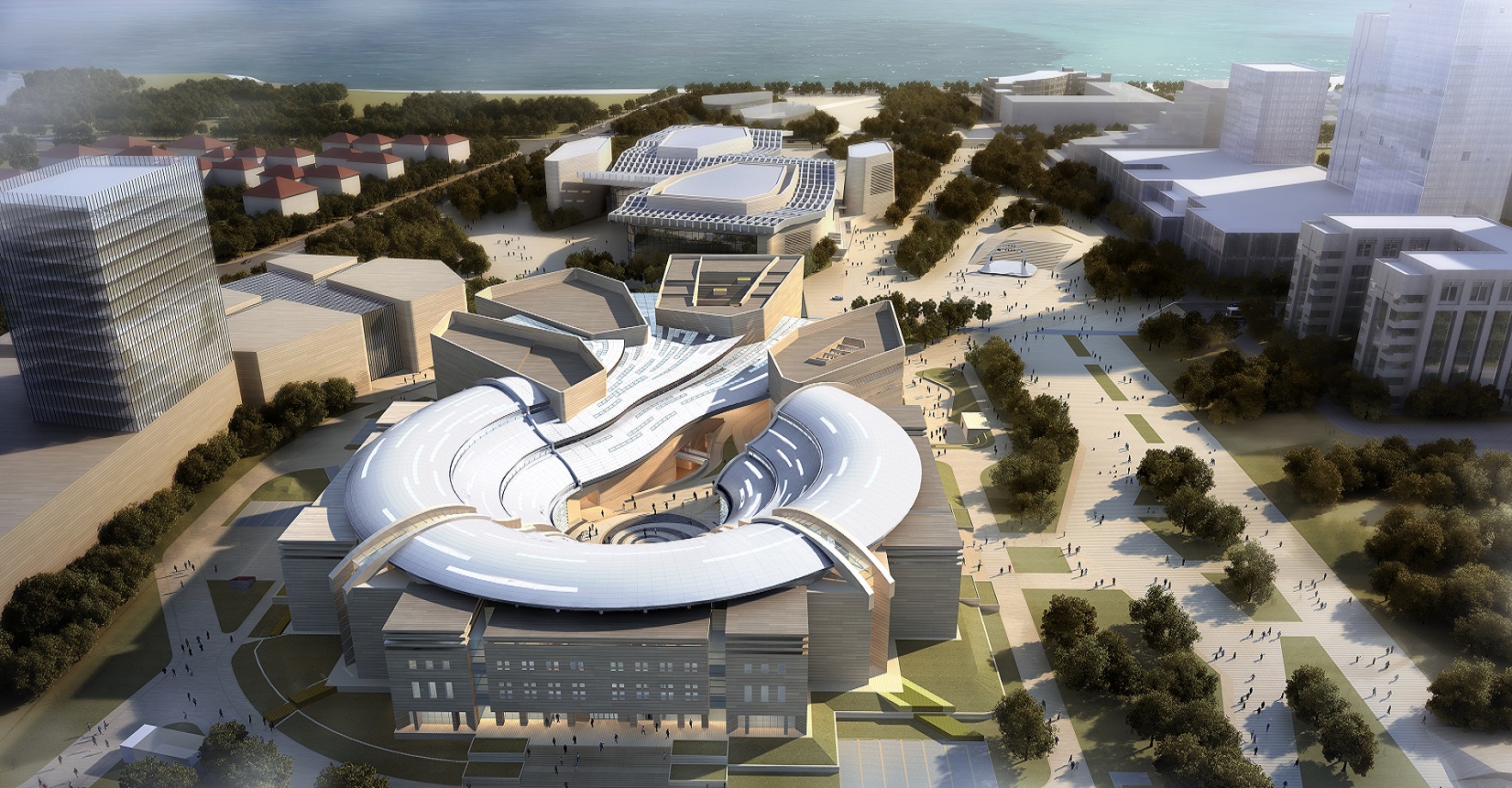 該項(xiàng)目由我院聯(lián)合中國(guó)建筑設(shè)計(jì)研究院崔愷院士團(tuán)隊(duì)共同打造。設(shè)計(jì)方案以“嶗山石花、海涌浪激”的意向?yàn)榛{(diào),形成“浪涌石開、時(shí)空留痕”的文化景象。